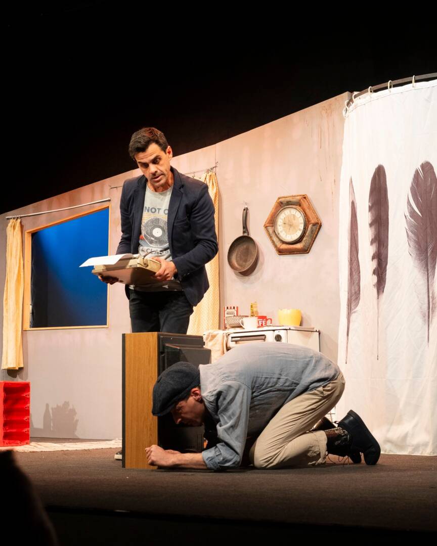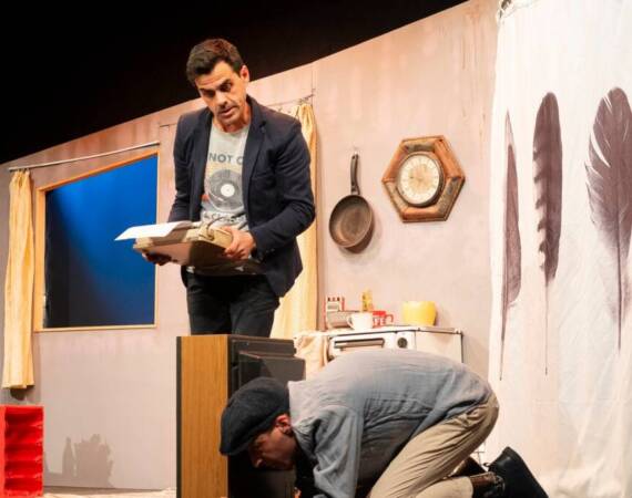 „„Една крачка напред“ измерва всичко от днешната българска действителност, без да затъва в нея. Вместо кахърна история за неуспял писател и влюбен кандидат-самоубиец, затиснати от голямата нужда, постановката вади от депресията с ударна доза смях.