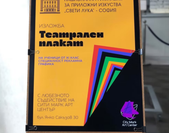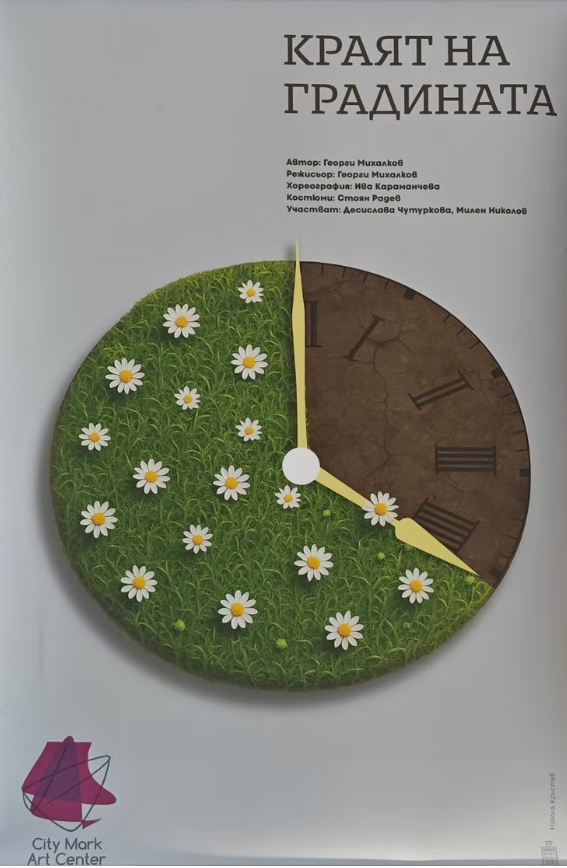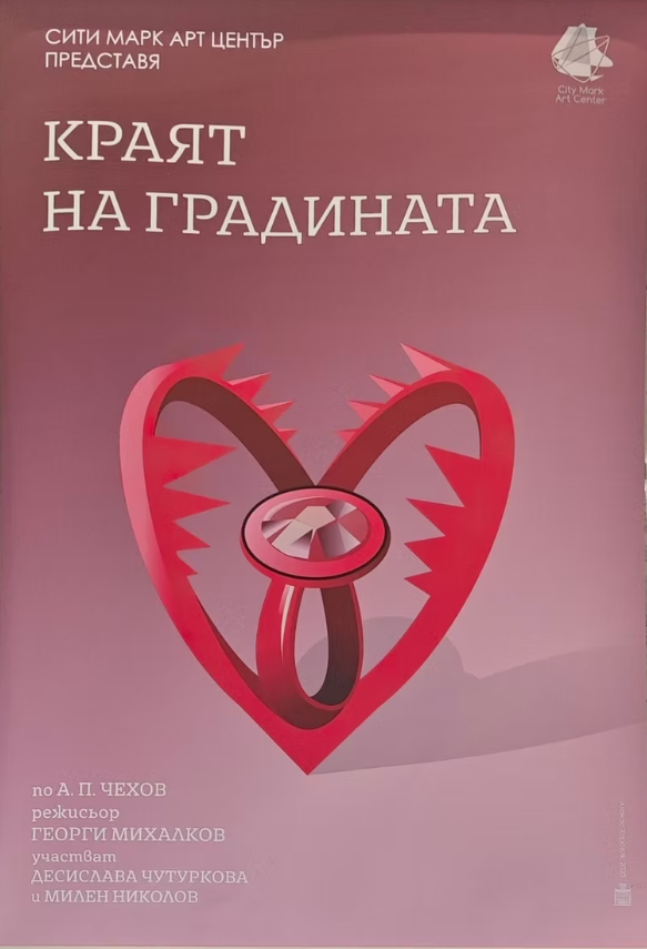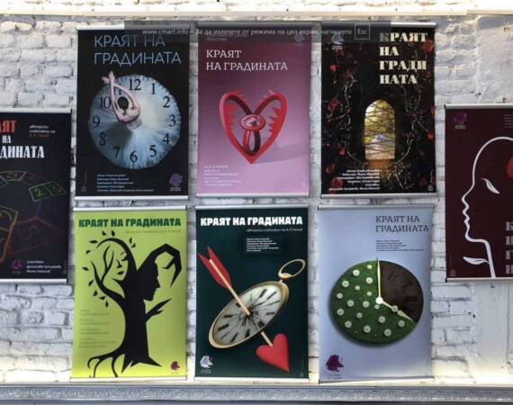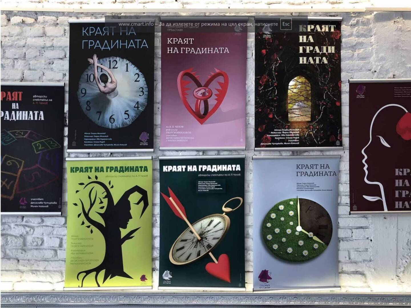 Стана вече ежегодна традиция, учениците от НГПИ „Свети Лука” – София, специалност „Рекламна графика”, да посещават изключително интересните постановки в „Сити Марк Арт център”, като след това отразяват своите впечатления с изработване на може би най-сложната форма на плаката – театралния. Вдъхновени от многопластовата постановка „Краят на градината” на режисьора Георги Михалков, бъдещите художници, под ръководството на преподавателите си Марио Петров и Николай Попов, ви канят на поредната си изложба в сградата на Сити Марк Арт Център. Заповядайте на откриването на 24.06 от 18:00, а от 19:30 часа можете да посетите и поредното представление на „Краят на градината“, което след 15 години сценичен живот, продължава да намира отклик и сред най-младите творци.
