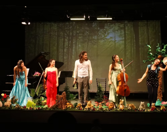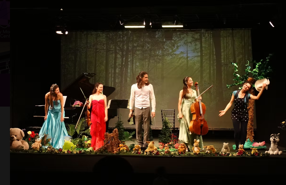 Чуруликане на птички, шумолене на водичка, жужене на пчелички… Тези звуци посрещат най-малките слушатели и техните родители в залата на Сити Марк Арт Център. Камерен ансамбъл „Силуети“ и актрисата Мила Китанова разкриват тайните на горските звуци, като превръщат омайната горска песен във вълшебна музика. Изпълнителите ще ви преведат през целия дневен цикъл – от свежото горско утро, през следобедната врява, залезът и красотата на нощта до настъпването на новия ден, озвучени от чудните пиеси на Шуберт, Дебюси, Чайковски и др. „Музиката на гората“ е класически концерт, съпроводен от чаровни истории в рими, горски звуци и картинки, които допълват преживяването и потапят деца и родители в приказна обстановка.