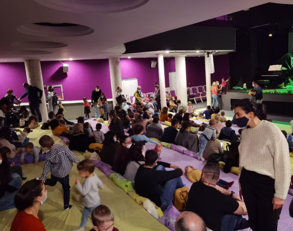 Билетите са без места, зрителите седят на възглавнички.